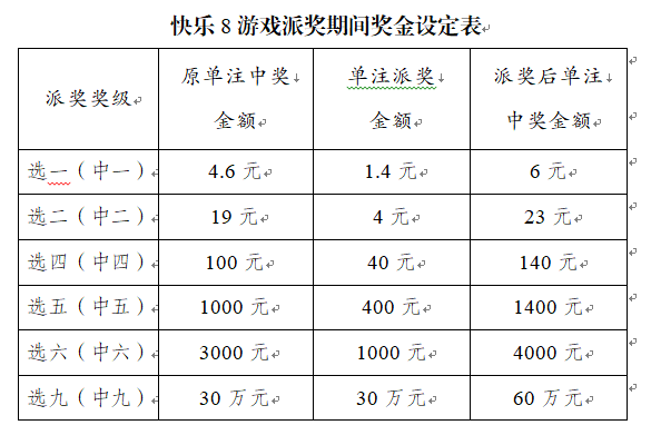 派獎期間,若派獎資金提前用完,則本次活動次日停止。若派獎最后一期,派獎資金尚未用完,則派獎時間順延至派獎資金用完后次日停止。如參加活動的玩法獎級觸發(fā)最大返獎總額風險控制,無論當期玩法獎級實際中獎獎金多少,均由派獎資金補足至派獎后獎金額。