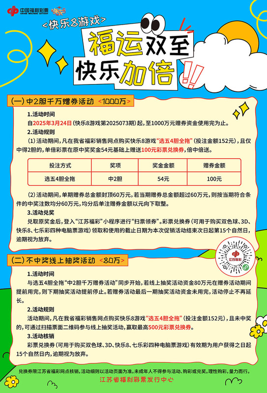 江蘇福彩快樂8千萬贈券和線上抽獎活動即將開啟,